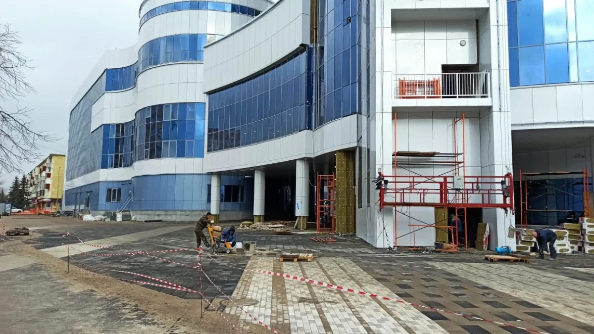 На территории вокруг спортивного объекта продолжаются работы.