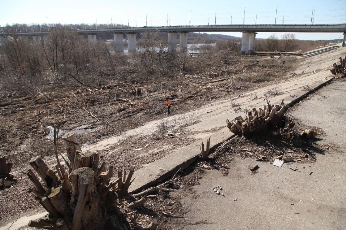 - Сотрудники Калугаблагоустройства активно удаляют кустарник, который успел вырасти аж до трех метров, - отметил Денисов. - Коллеги из водоканала вытаскивают пни с корнями, которые выросли между бетонных плит. В первую очередь это важно для защиты улицы Набережной.
