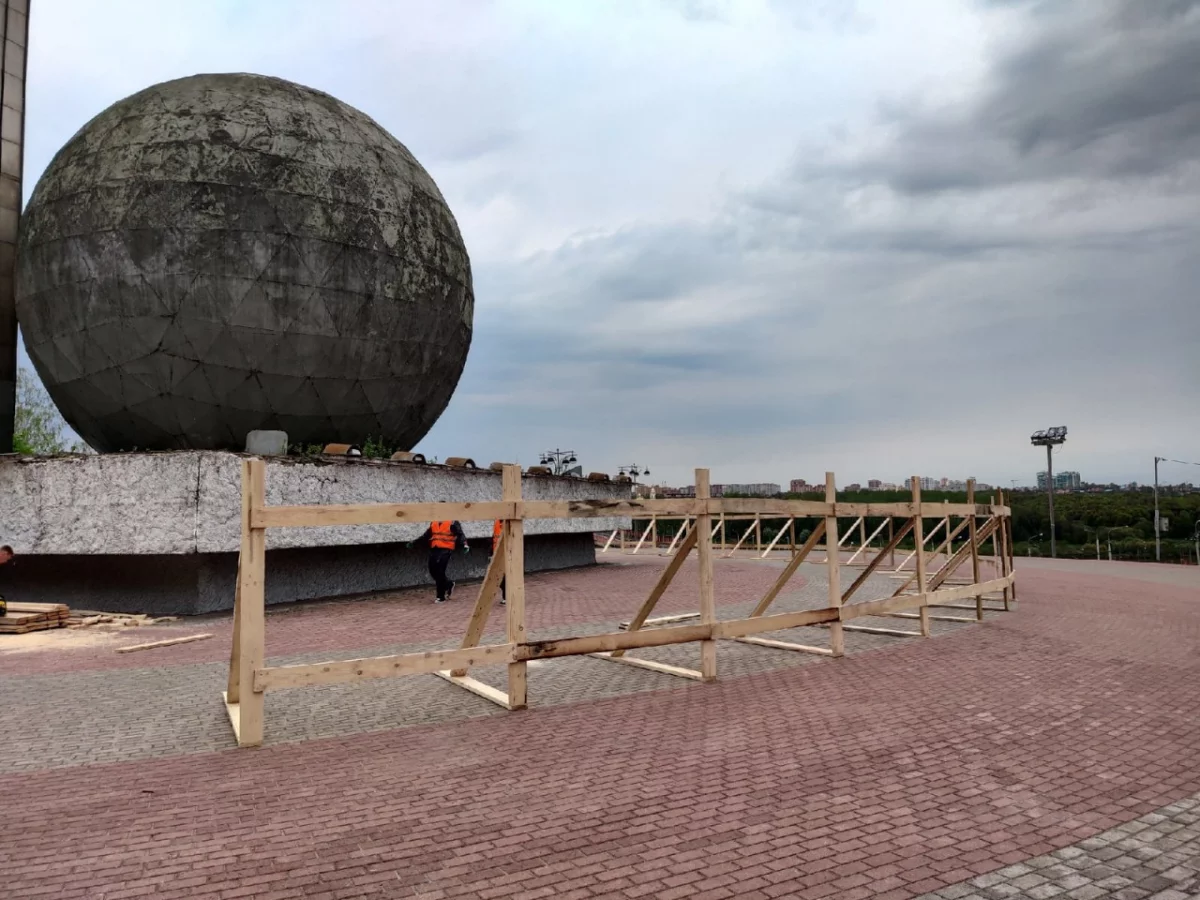 В среду, 12 мая, в Калуге начали обносить временным забором памятник 600-летию города. Как мы уже рассказывали, в ближайшее время должна начаться реконструкция «шарика».