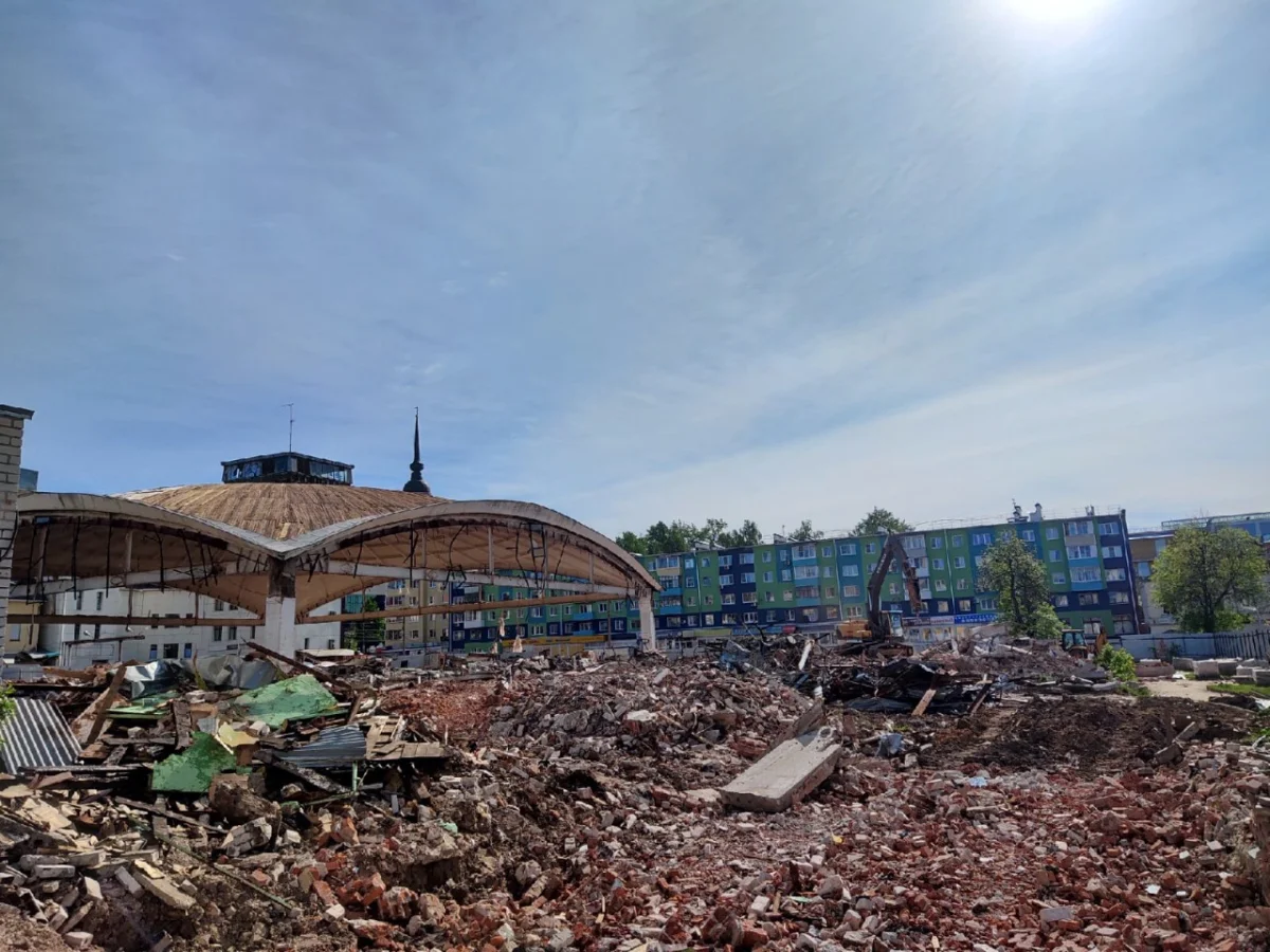 В Калуге продолжается снос бывшего здания рынка на улице Марата. К 25 мая купол остался без стен.