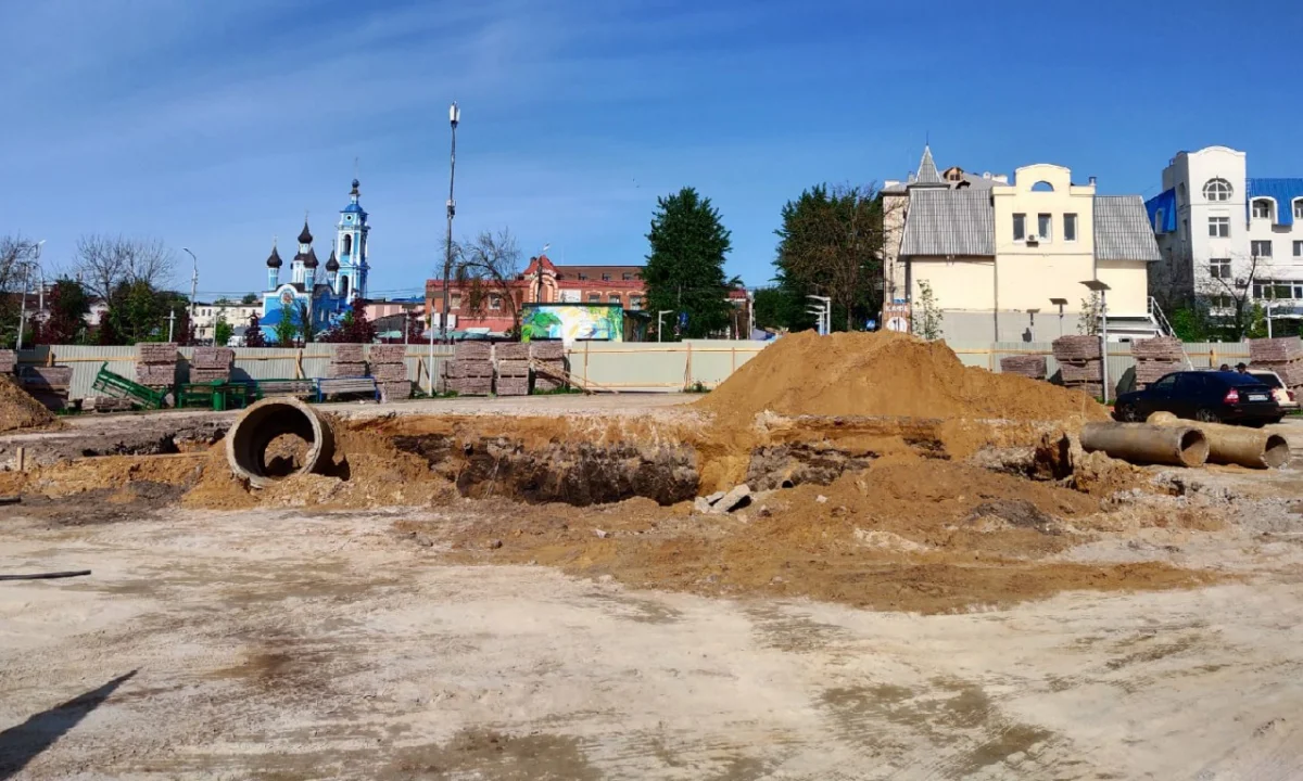 Как мы уже рассказывали, в мае в Калуге начались работы по строительству фонтана в скверопарке, который располагается на месте бывшего вещевого рынка на улице Марата.