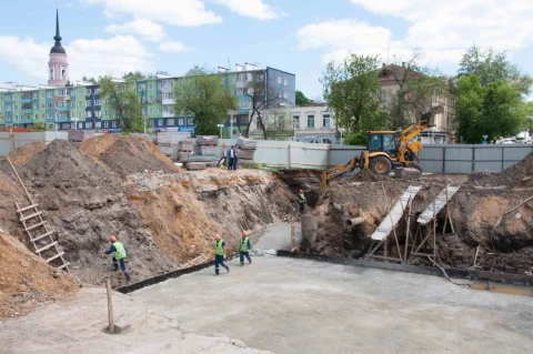 В Калуге продолжается строительство нового фонтана в парке на месте рынка на улице Марата. В четверг, 3 июня, на месте проведения работ побывал городской голова Дмитрий ДЕНИСОВ.
