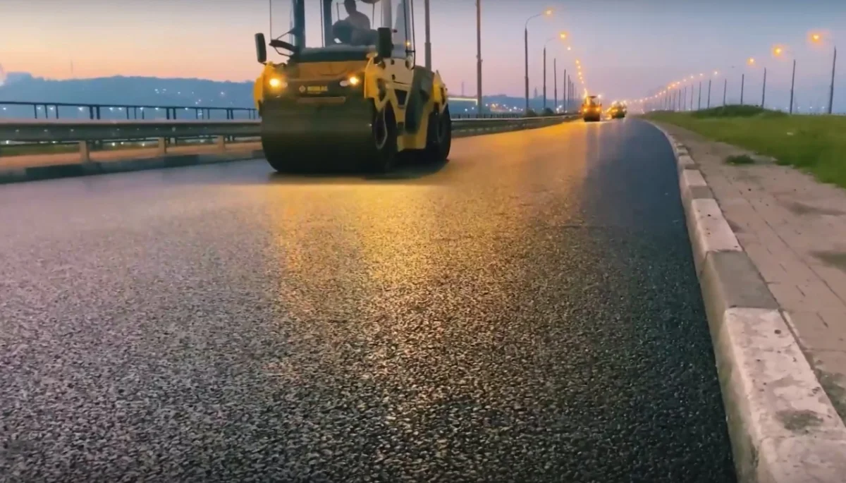 За две ночи рабочие уложили асфальт на одной стороне дамбы Яченского водохранилища в Калуге