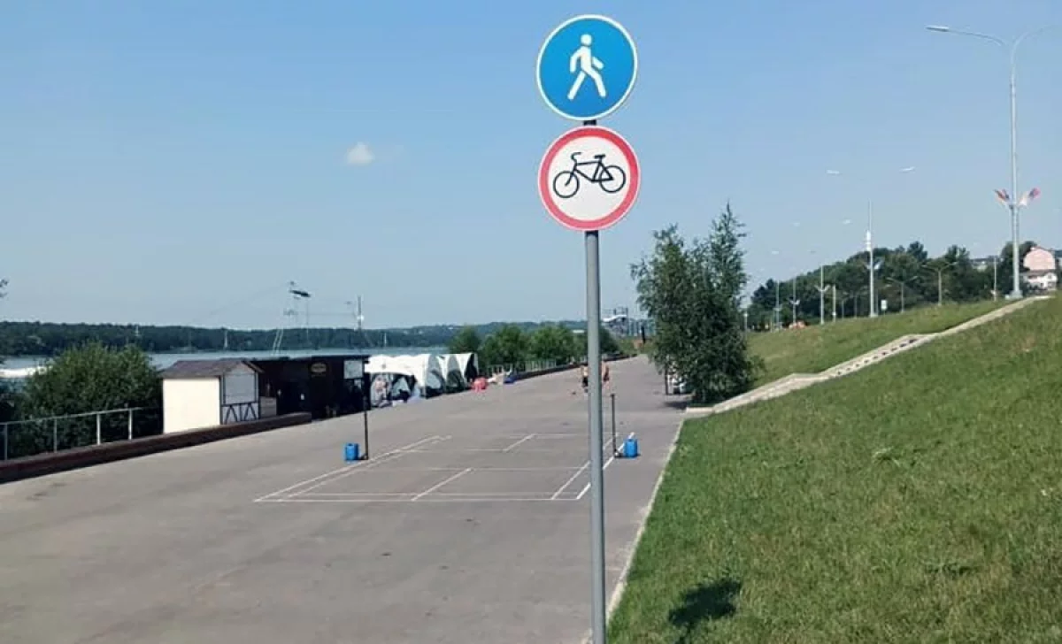А в нижней части набережной появился знак, запрещающий там ездить на велосипедах и мопедах. Транспорт можно лишь катить в руках.