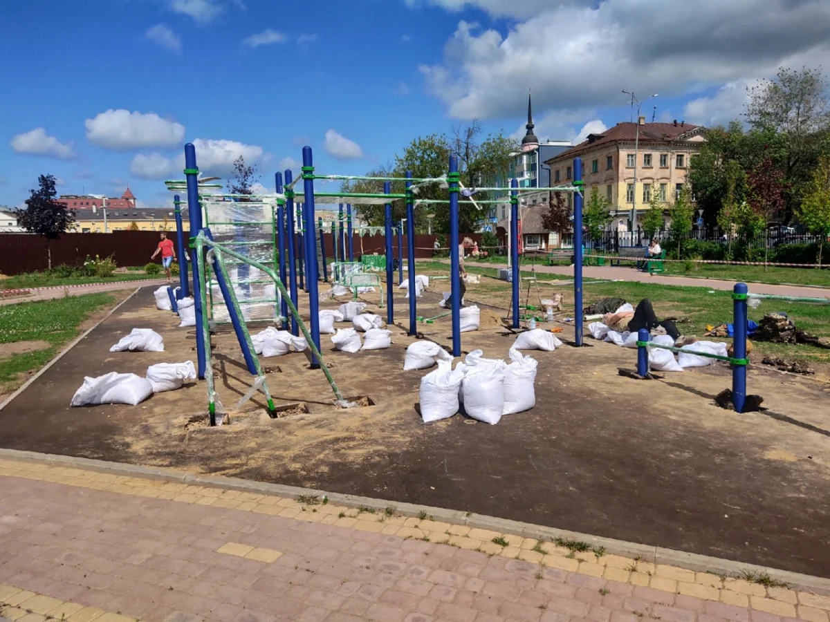 В Калуге новую спортивную площадку устанавливают в парке на месте рынка