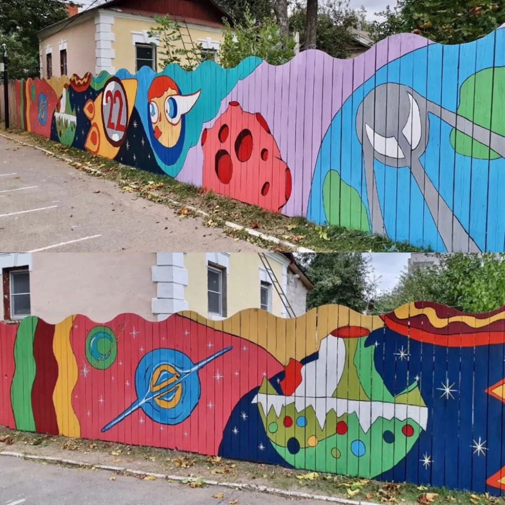 В Калуге забор у школы №22 украсили рисунками на тему космоса