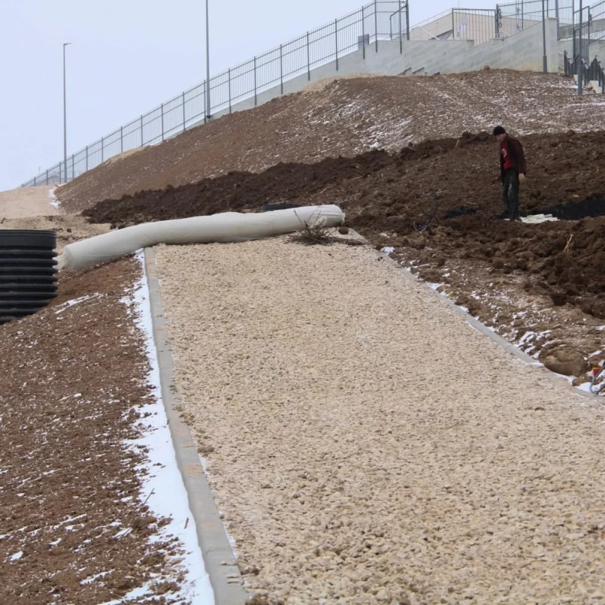 По информации горуправы, сейчас завершаются установка георешетки на склоне с обратной засыпкой растительным грунтом и устройство кабеля освещения и закладных деталей опор освещения.