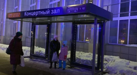 На прошлой неделе новая остановка была смонтирована у Дворца спорта.