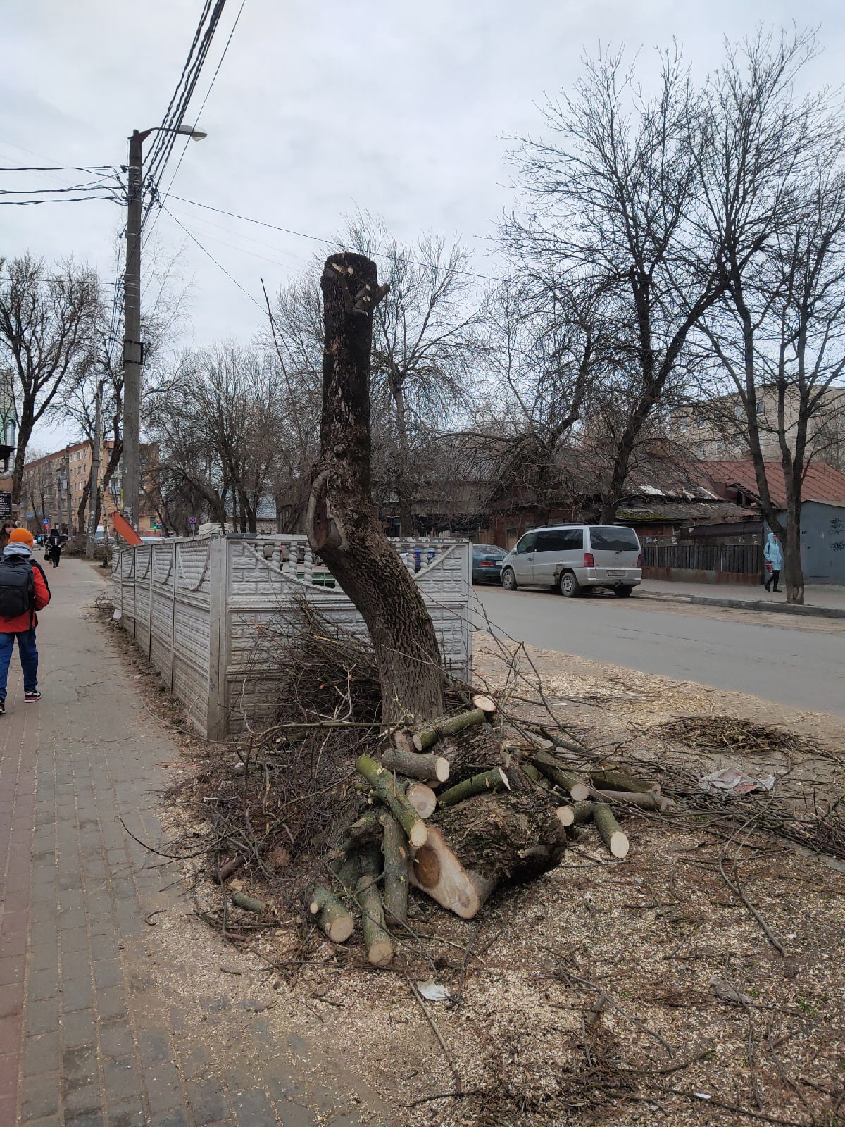 В четверг, 14 апреля, в Калуге коммунальщики начали обрезать деревья на улице Тульской. Работы начались от перекрестка с улицей Луначарского.