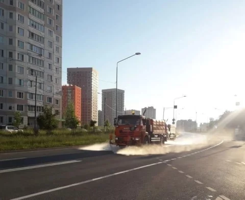 Полив проводят днем на дорогах с большим трафиком движения, по которым курсирует общественный транспорт.