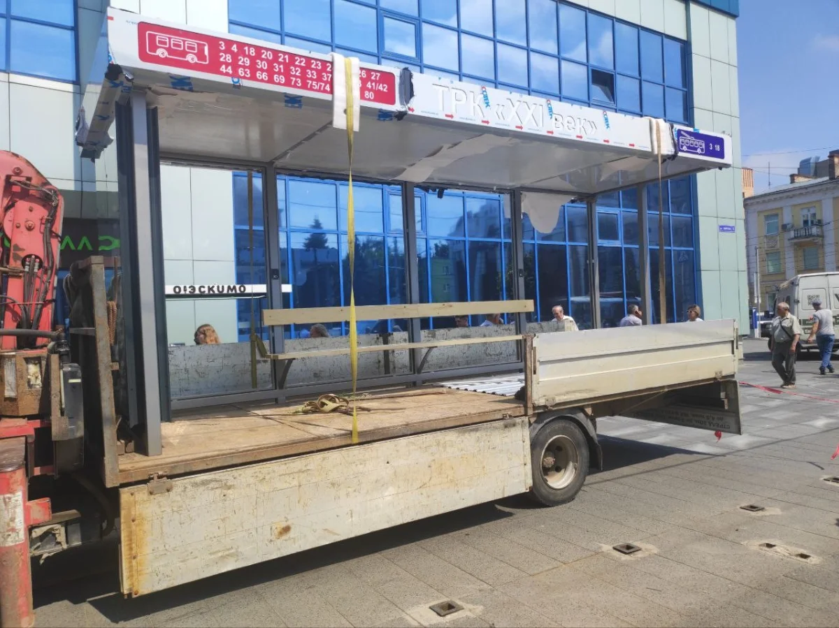Во вторник, 26 июля, в Калуге начали устанавливать новый остановочный павильон у торгового центра «XXI век» на улице Кирова.