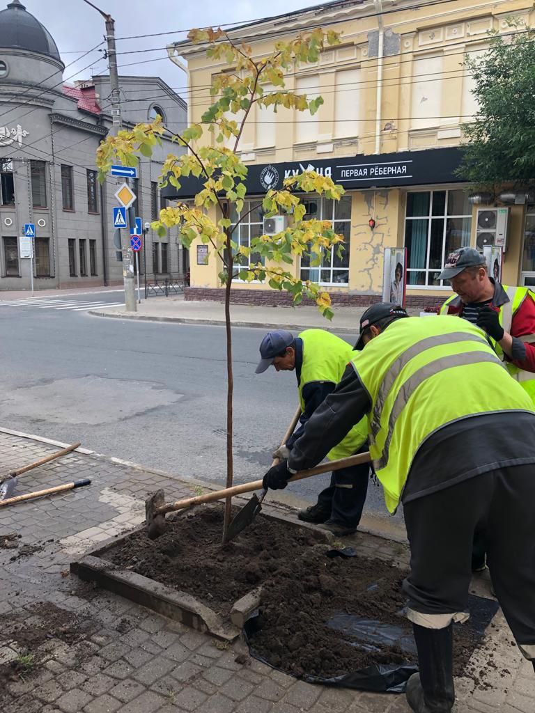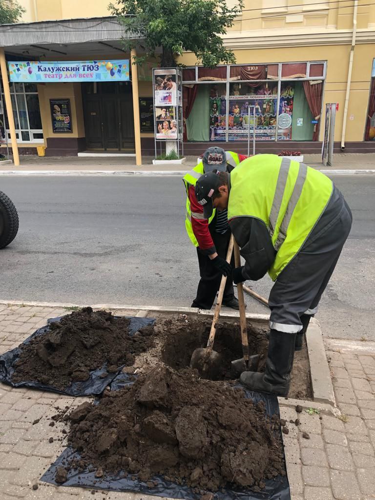 В Калуге высадили новые деревья на улице Театральной