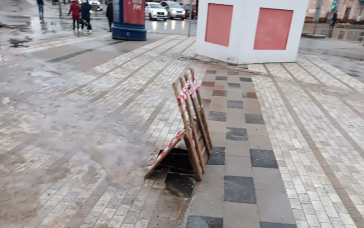 В Калуге образовался новый провал на тротуаре перед Дворцом спорта