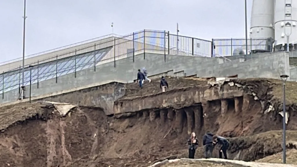 Калужан в свою очередь попросили предупредить своих детей об опасности, которую представляет место оползня.