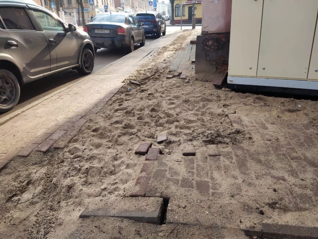 Жители Калуги жалуются на разрытые тротуары на улице Театральной