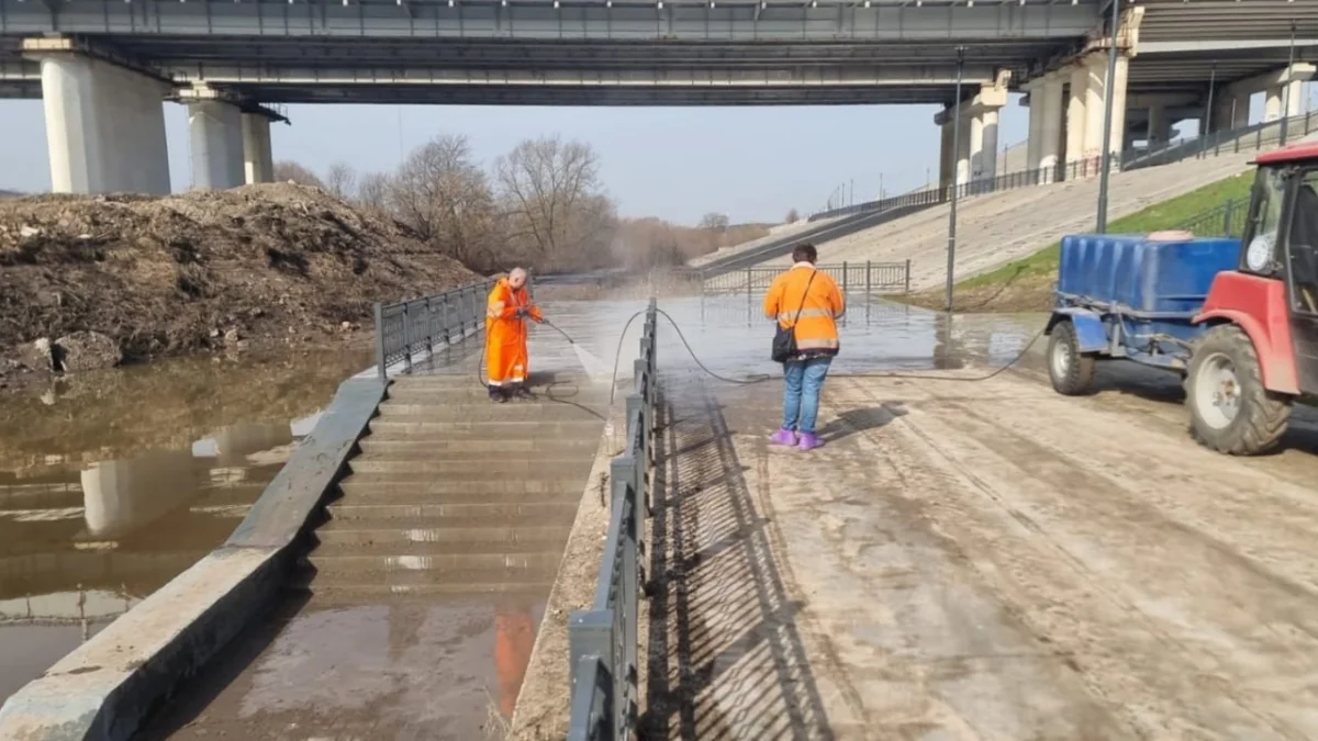 Паводок оставил после себя много грязи. Поэтому в среду, 5 апреля, коммунальщики принялись за уборку.