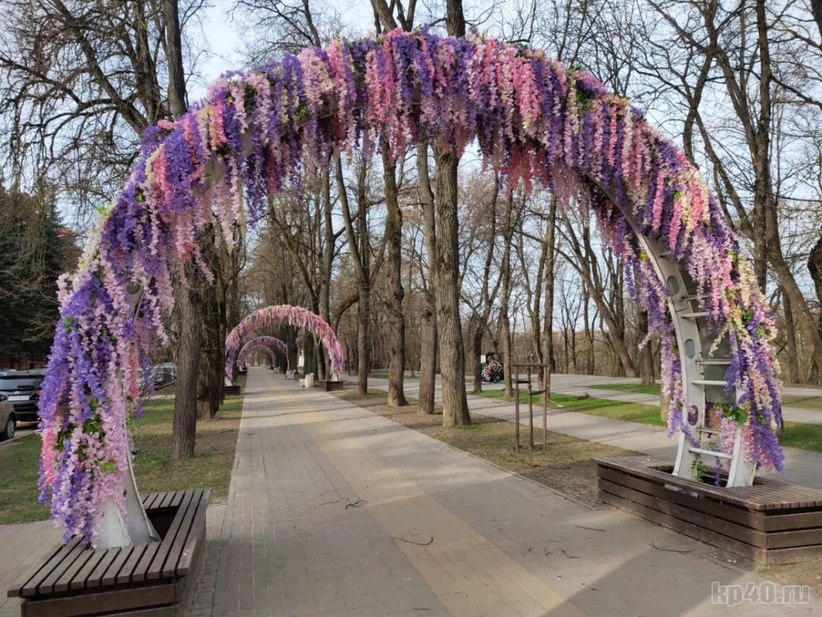 В Калуге арки на Золотой аллее у Березуевского оврага третий год подряд украсили искусственными цветами.