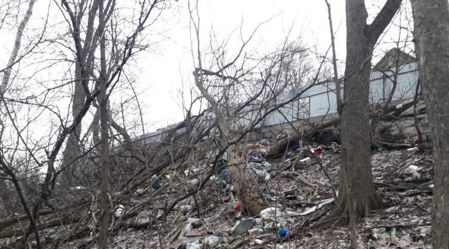 В районе набережной кто-то свалил корни и ветки деревьев, а также куски бетона и деревянные доски.