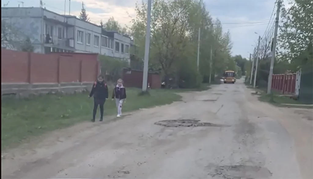 В четверг, 27 апреля, наша читательница Ирина Юшечкина прислала в редакцию видео, на котором дети идут в школу №33 в деревне Шопино по краю проезжей части. Автомобилисты вынуждены объезжать многочисленные ямы по обочине, где идут пешеходы. Наша читательница возмущается: