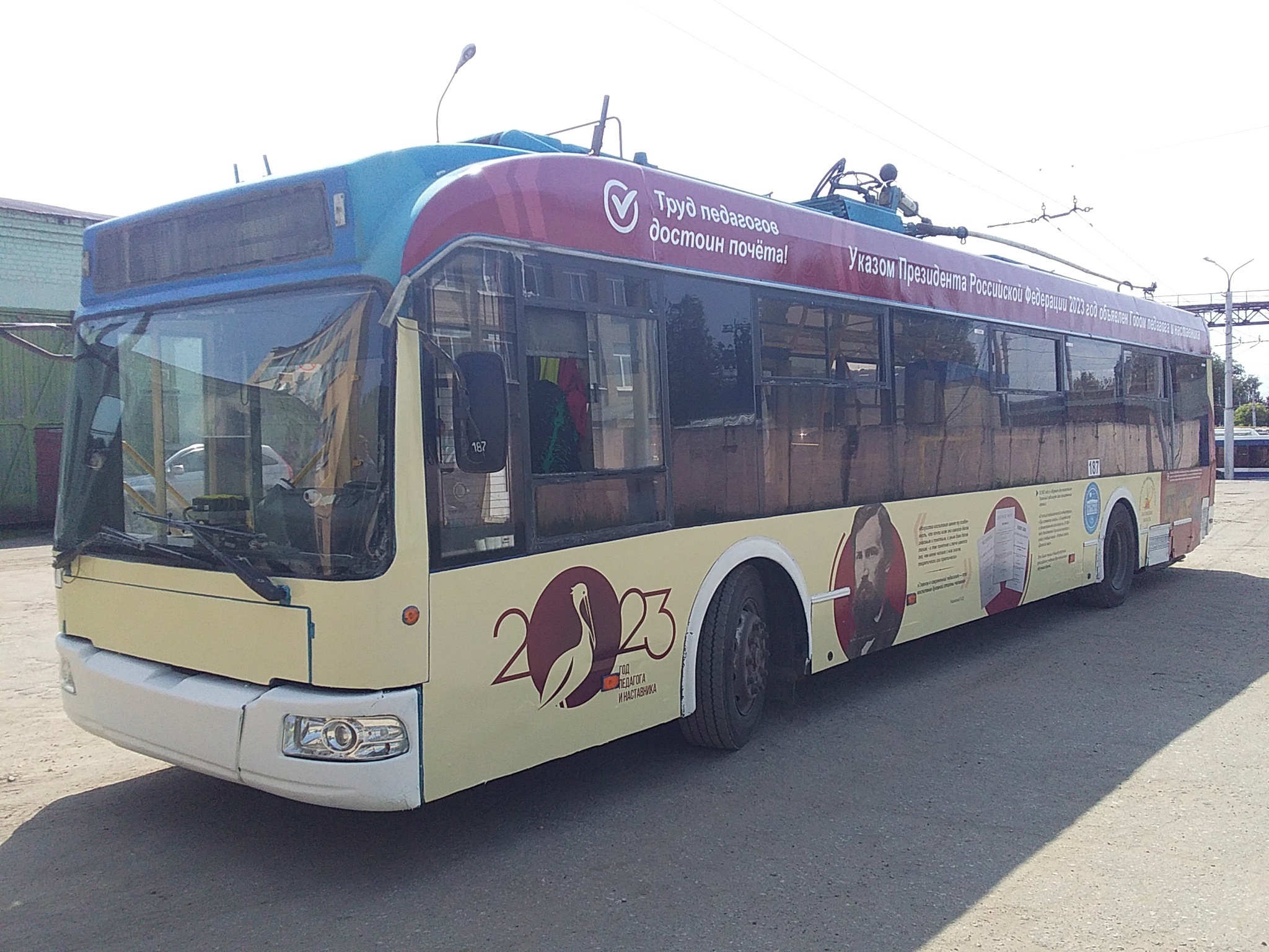 В честь Года педагога и наставника в Калуге один из троллейбусов украсили портретами Константина Циолковского и Константина Ушинского. Фото опубликовал 1 июня министр образования и науки Калужской области Александр Аникеев.