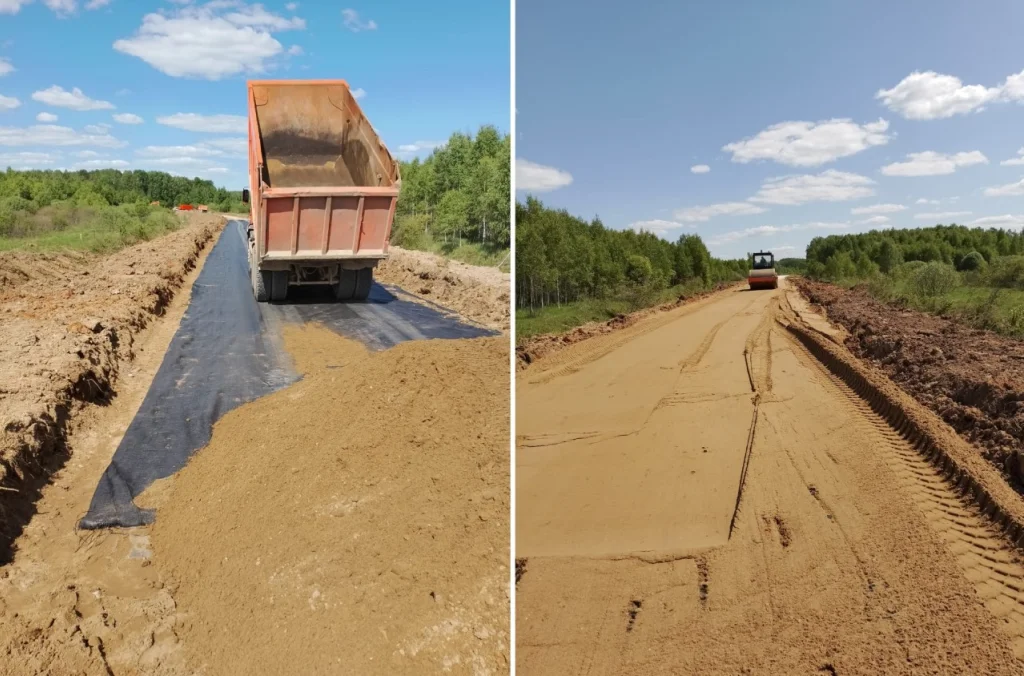 В Калужской области начали асфальтировать дорогу к тульскому Алексину