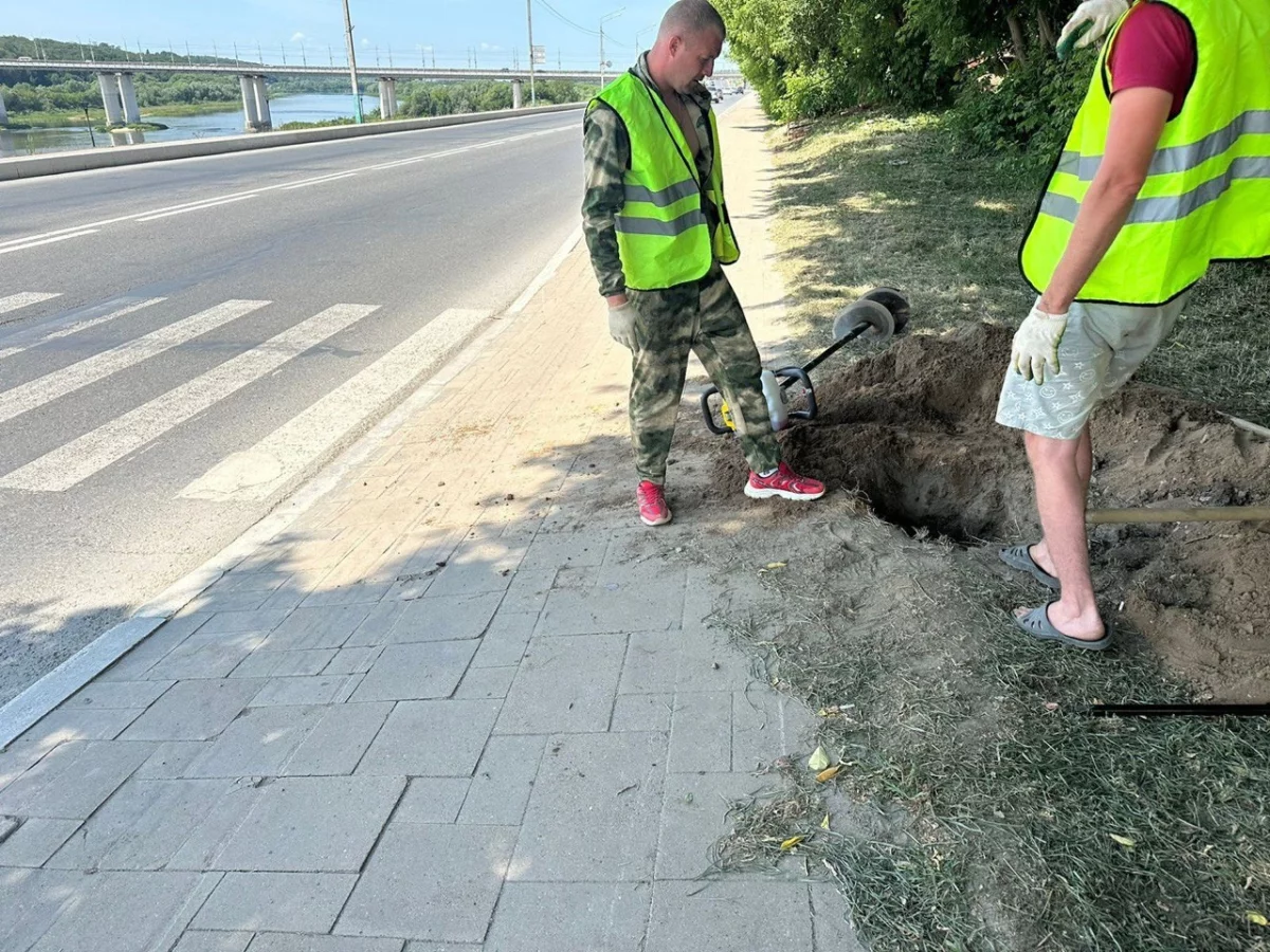 Работы проводятся у пешеходного перехода в районе лестницы, ведущей к улице Берендяковской.