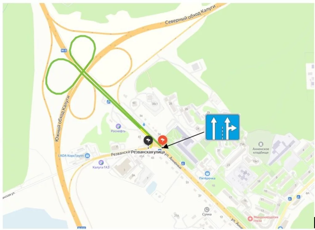 С 1 октября в Калуге изменится схема движения на пересечении подъезда от трассы М3 «Украина» и улицы Резванской.
