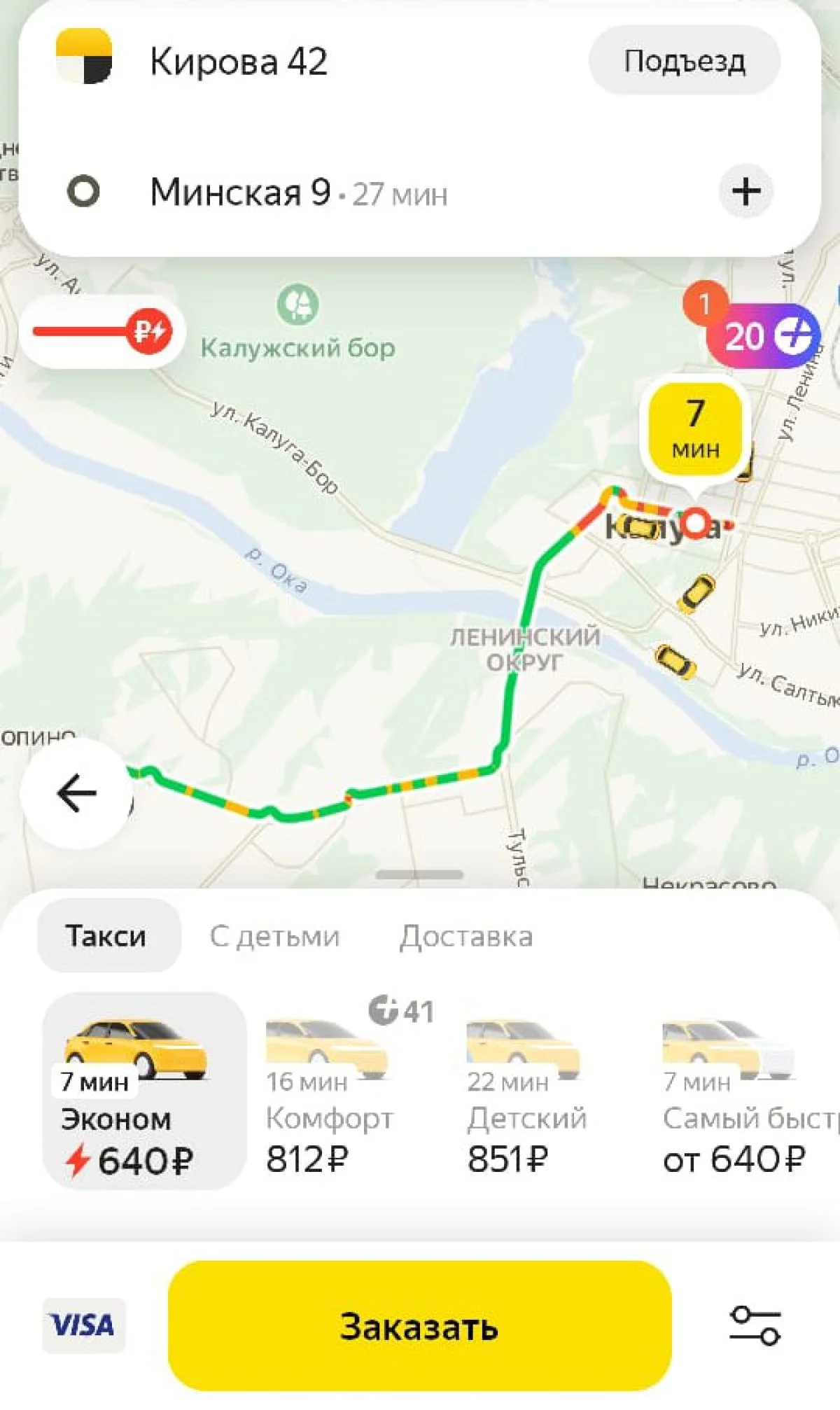 Вечером в четверг уехать из центра на Правый берег стоит минимум 640 рублей.