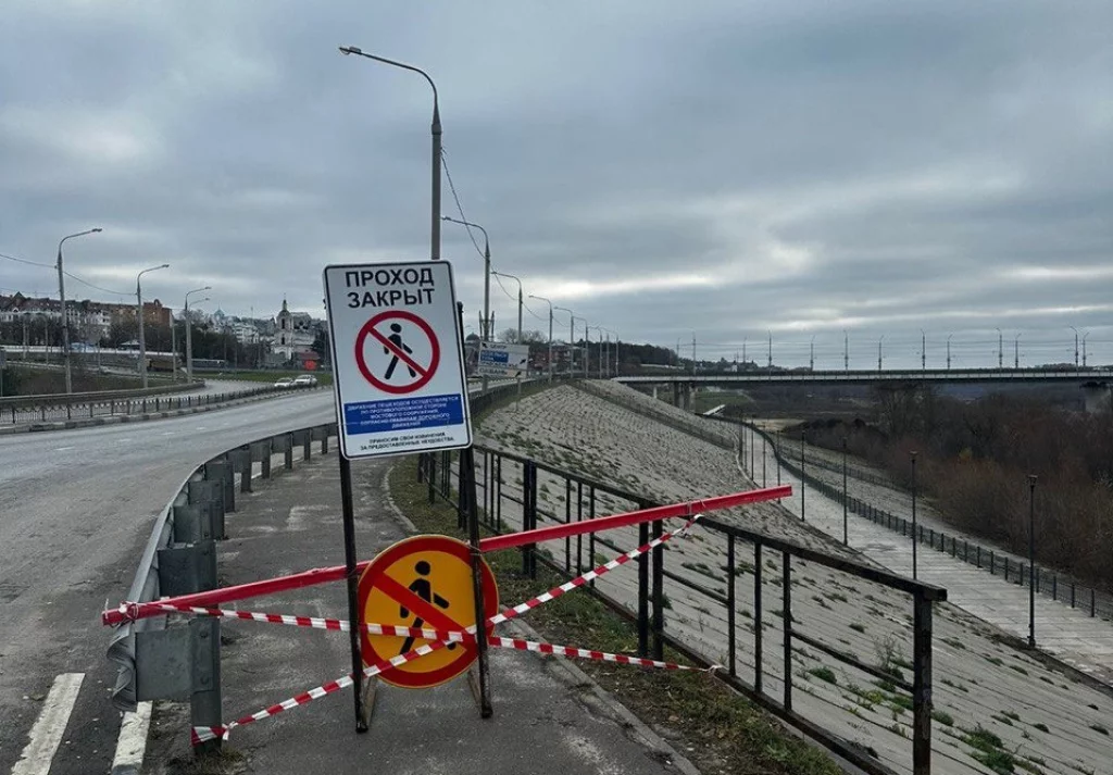 Как мы уже рассказывали, в Калуге начали менять ограждение на Гагаринском мосту через Оку. Из-за этого закрыта одна из пешеходных дорожек.