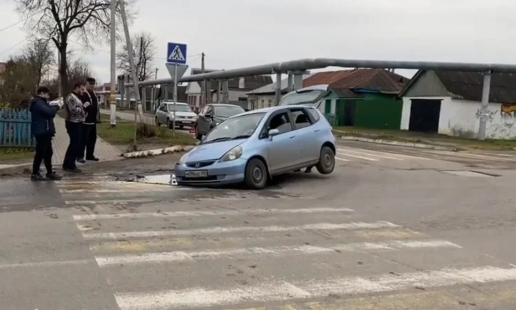 На перекрестке улиц Кропоткина и Энгельса в Людиново автомобиль «Хонда» застрял в открытом колодце. Фото и видео в пятницу, 10 ноября, выложили в сообществе «Подслушано Людиново».