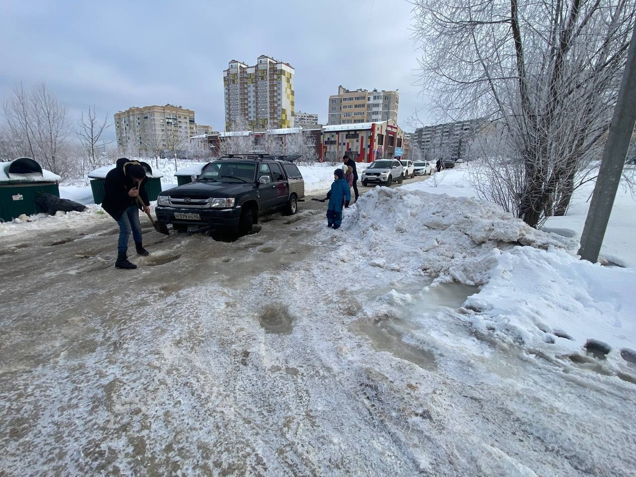 Проезд у дома №3 на Сиреневом бульваре стало тяжело преодолевать даже большим автомобилям.