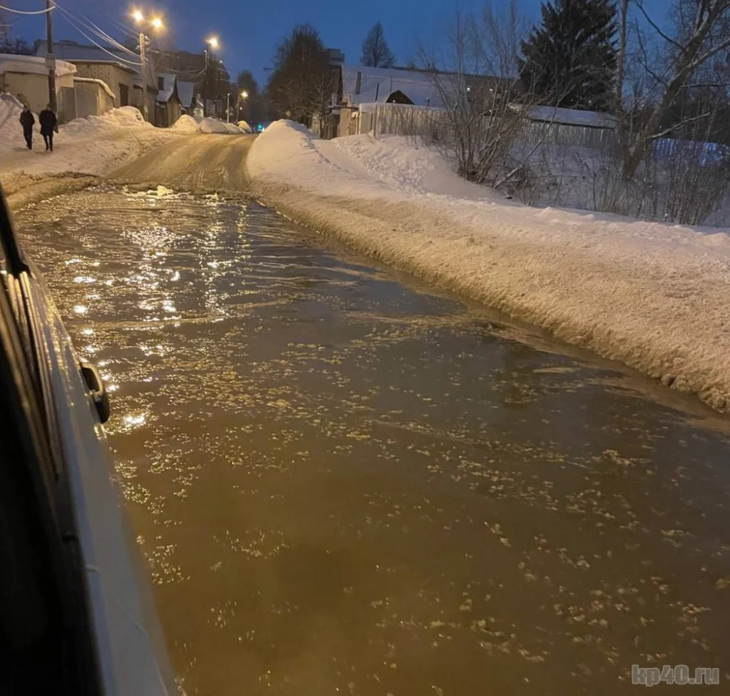 Вечером в четверг, 25 января, в Калуге настоящее озеро разлилось на улице Молодежной в районе дома №158 по Грабцевскому шоссе.