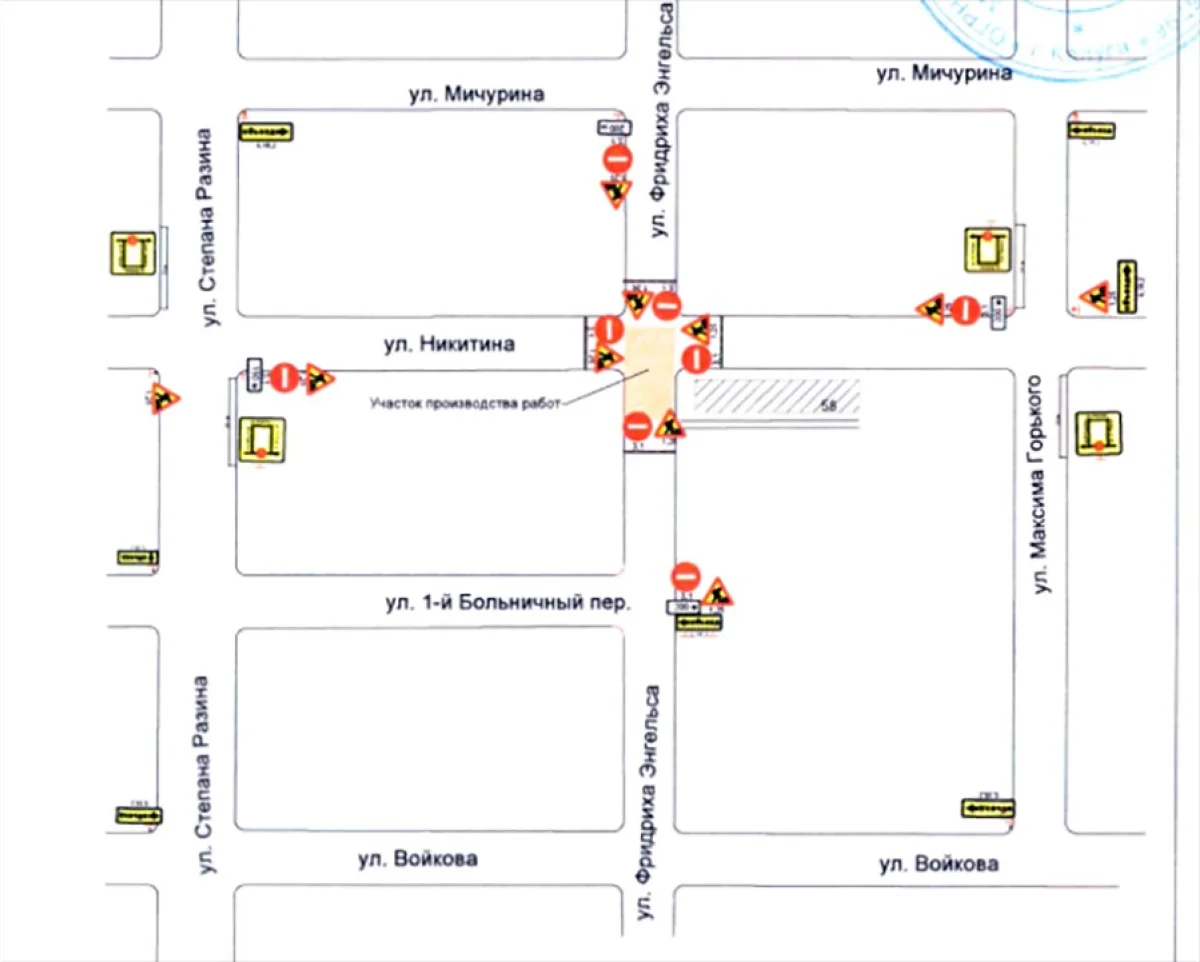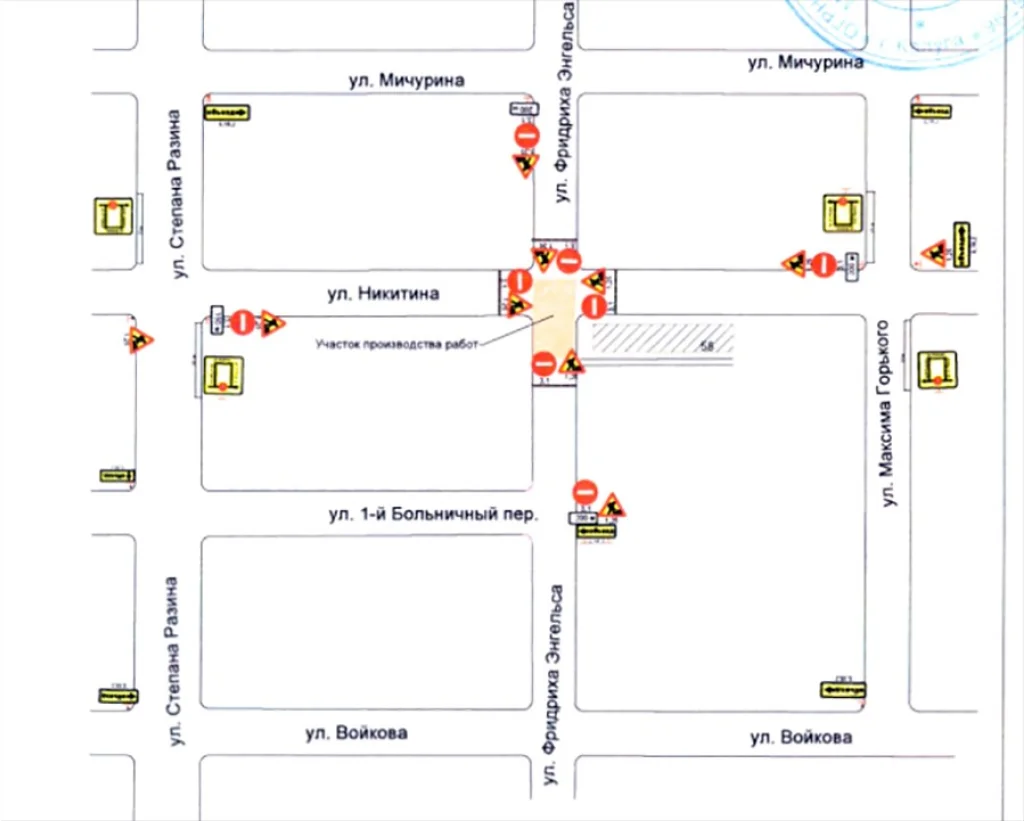 Водителям предлагается объезжать перекрытый участок по улицам Разина, Мичурина и Войкова.