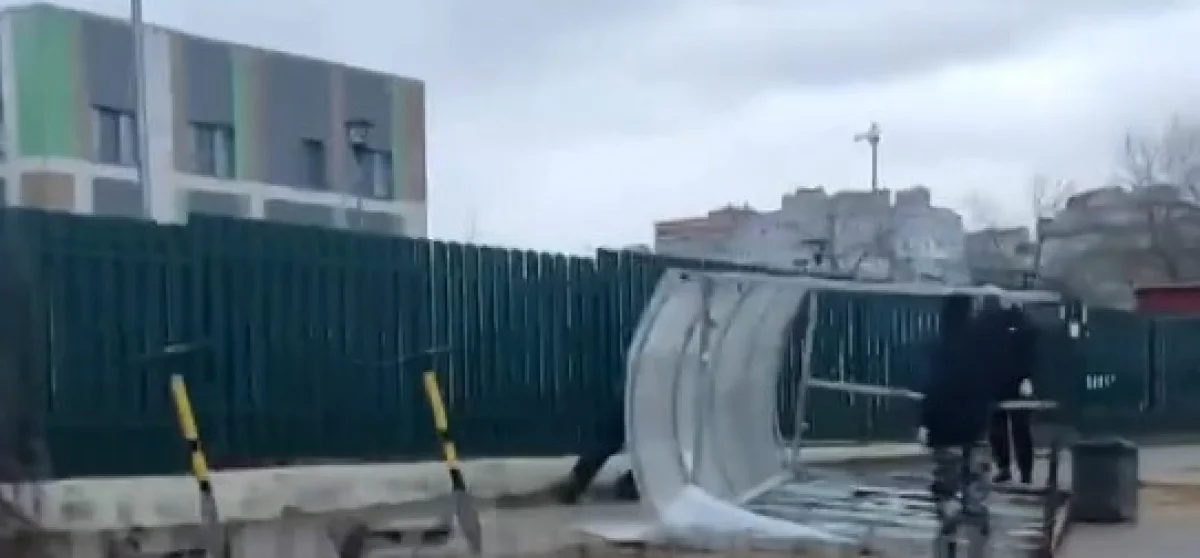 Павильон не выдержал сильных порывов в среду, 3 апреля, на улице Маяковского у детского сада.
