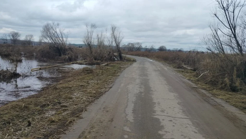 Дорогу в эту деревню затапливает практические ежегодно. На период паводка там работает переправа.