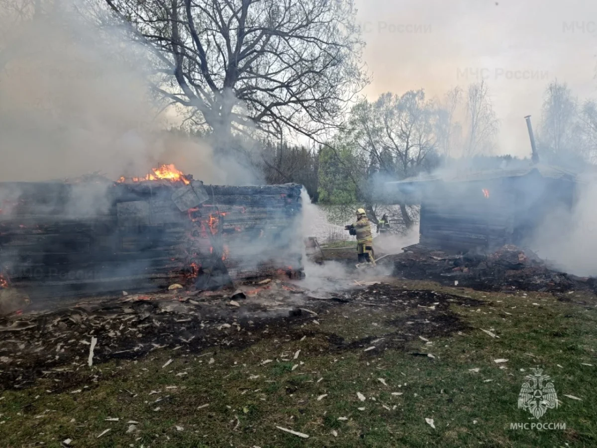 Огонь полностью уничтожил деревянную постройку рядом с частным домом.