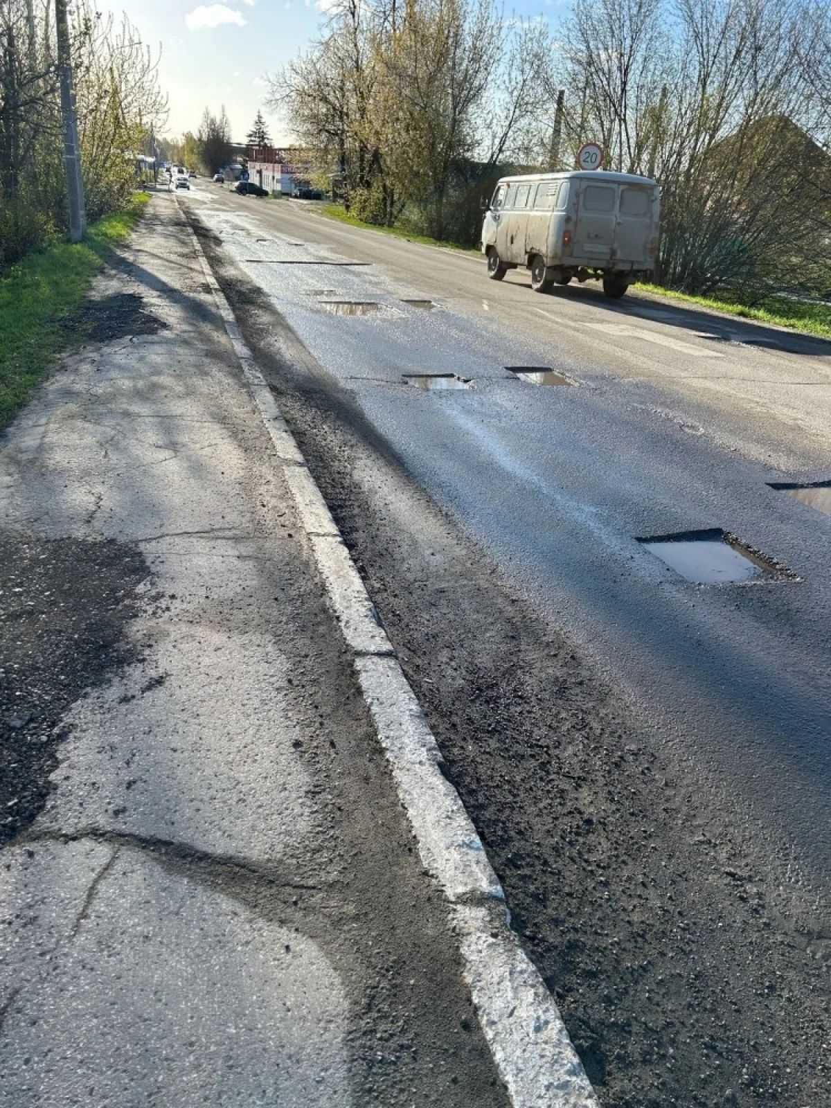 На снимке видно, что дорожники нарезали асфальт для ямочного ремонта, но сами работы еще не провели.