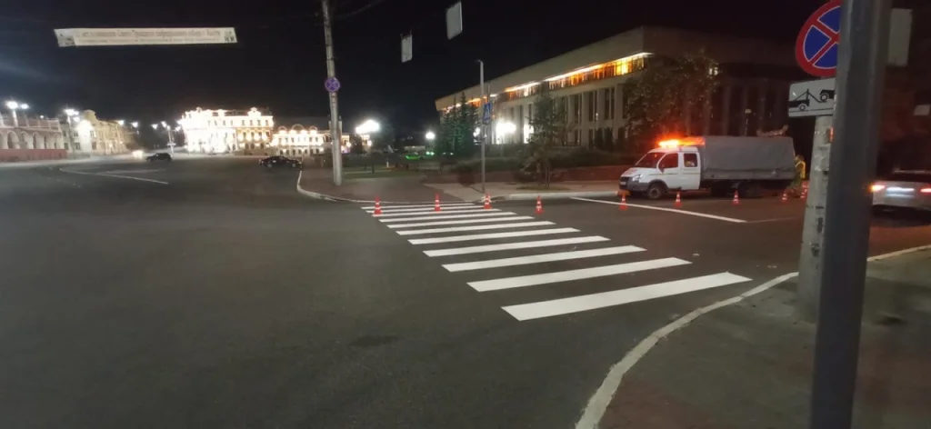 Работы проводятся ночью на Окской развязке, улице Луначарского, площади Старый Торг, улице Салтыкова-Щедрина, скверах Ленина и Мира.