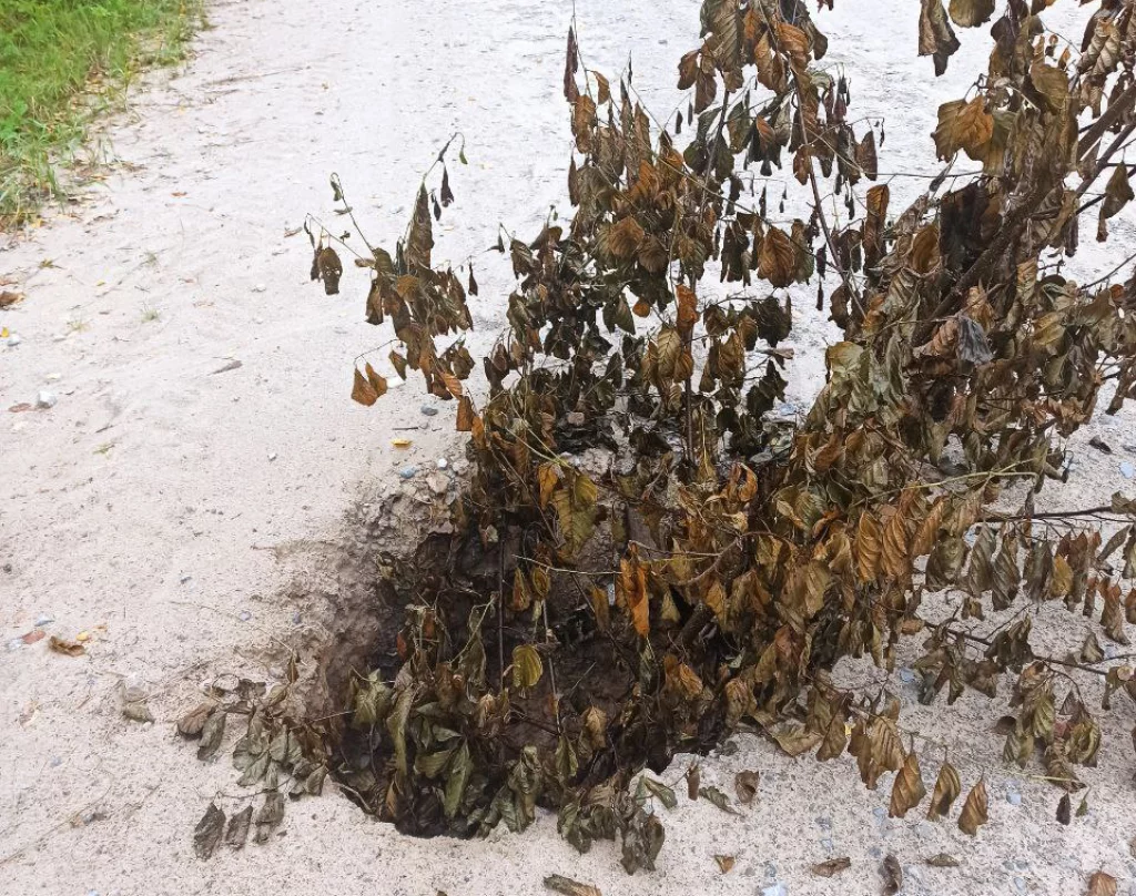 Огромная яма образовалась на грунтовке между станцией Думиничи и селом Вёртное.