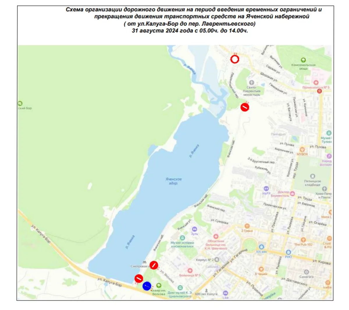 Также до 14:00 закрыта для машин набережная Яченского водохранилища – от Подзавалья до дамбы.