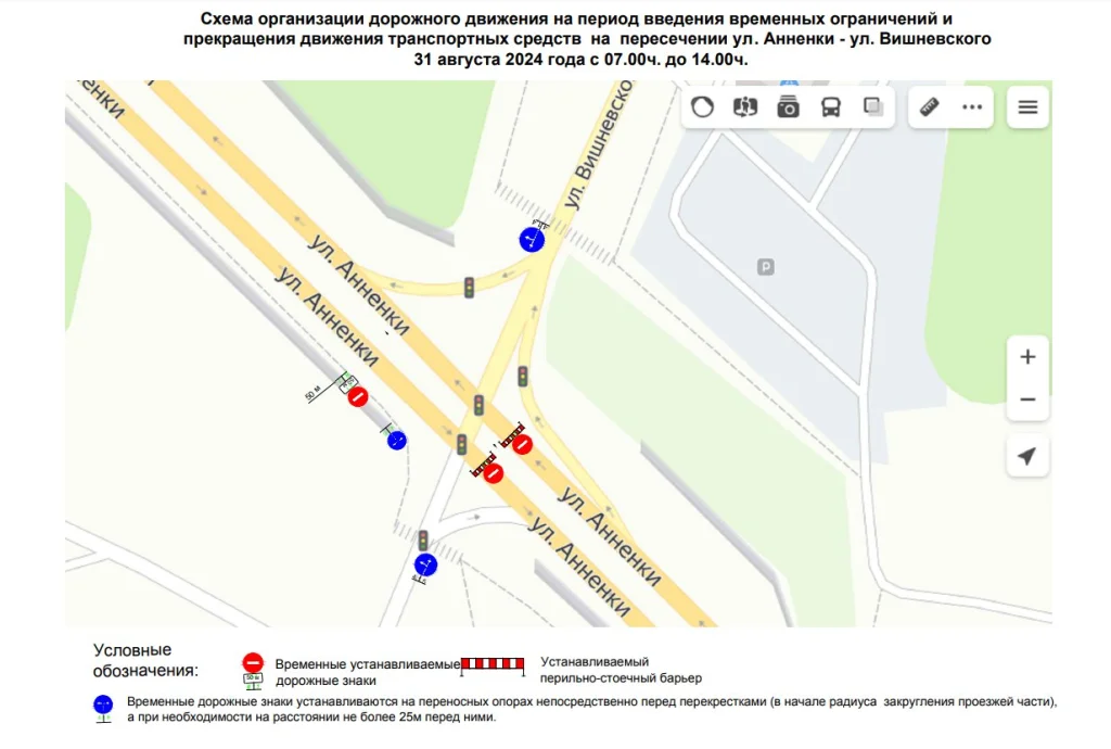 В субботу, 31 августа, нельзя проехать на участке между улицей Вишневского и Гагаринским мостом, сообщили в городской управе.