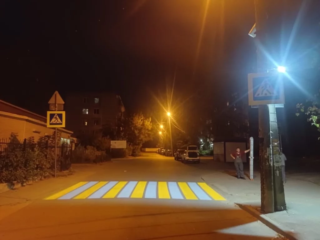 Переходы подсветили на ул. Стеклянников сад, 25, пер. Малинники, 8а, пер. Дорожный и пер. Ольговский.