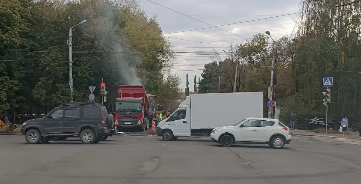 Из-за дорожной техники образовались заторы. Движение затруднено в обе стороны.