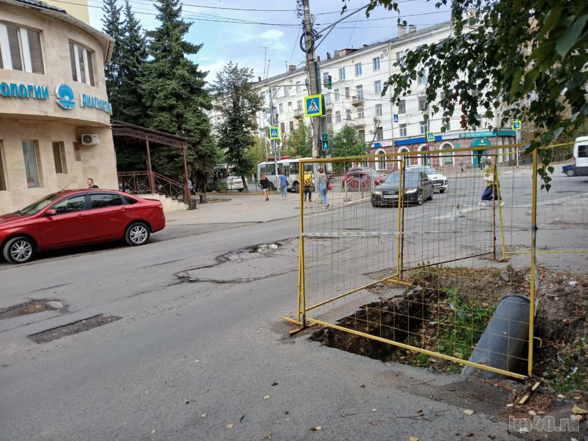 В министерстве строительства и ЖКХ Калужской области сообщили, что водоканал продолжает менять коммуникации в районе перекрестка с Теренинским переулком.