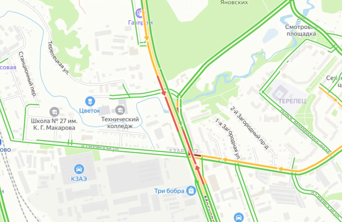 Утром в понедельник, 30 сентября, движение затруднено на улице Московской в районе перекрёстка с Азаровской.