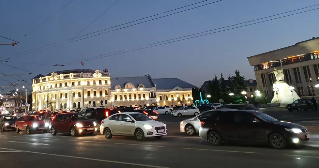 Большие заторы на улицах Ленина, Кутузова, Достоевского, Жукова, Либкнехта, Баррикад, Гагарина, Набережной, Воробьевской, площади Старый Торг, 2-м Красноармейском переулке.