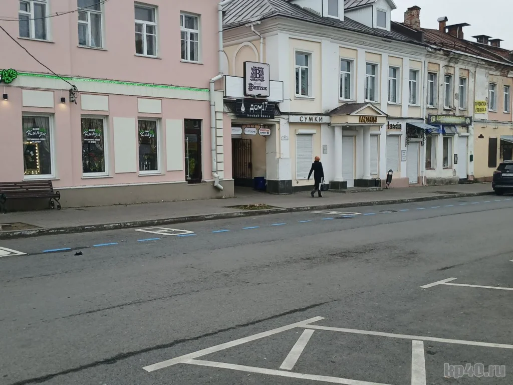 Такая голубая разметка ранее использовалась в Калуге на улице Кирова, однако быстро стерлась.