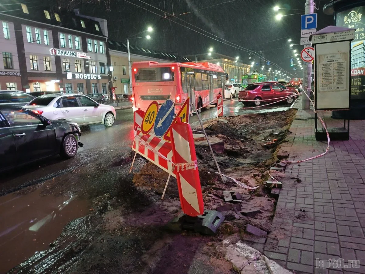 В Калуге раскопали тротуар для ликвидации платной парковки