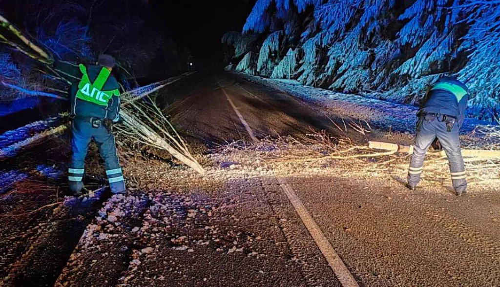 Калужские инспекторы ДПС убрали с дороги упавшие деревья