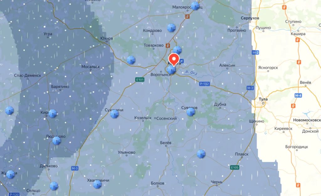 Пик осадков в Калуге Гидрометцентр прогнозируют с 18:00 до 22:00.
